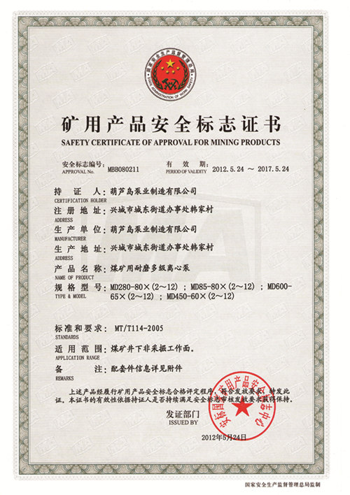 礦用產(chǎn)品安全標(biāo)志證書